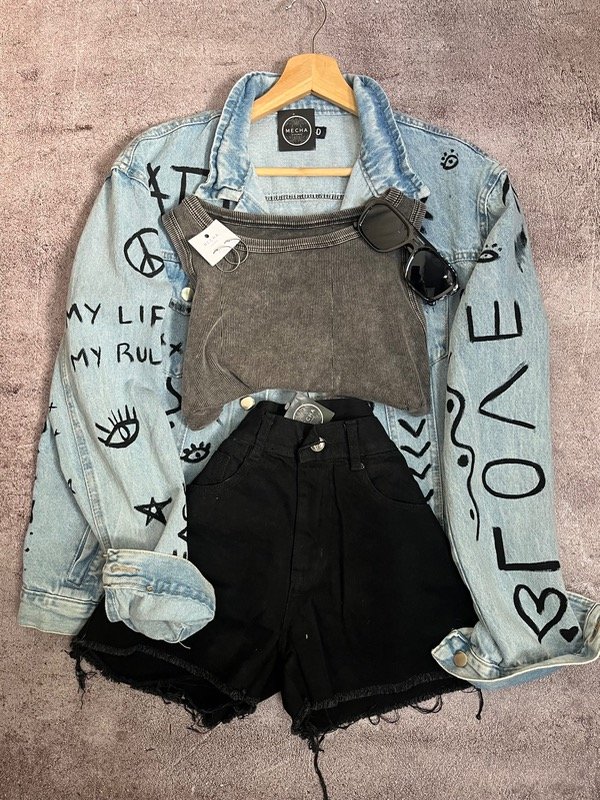 Chaqueta de Jeans Oversize de Diseño pintada a mano.