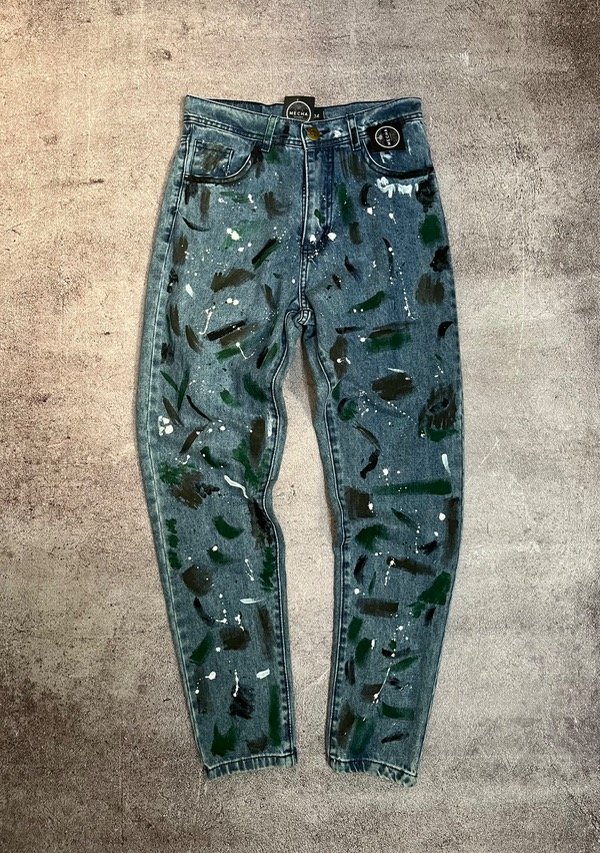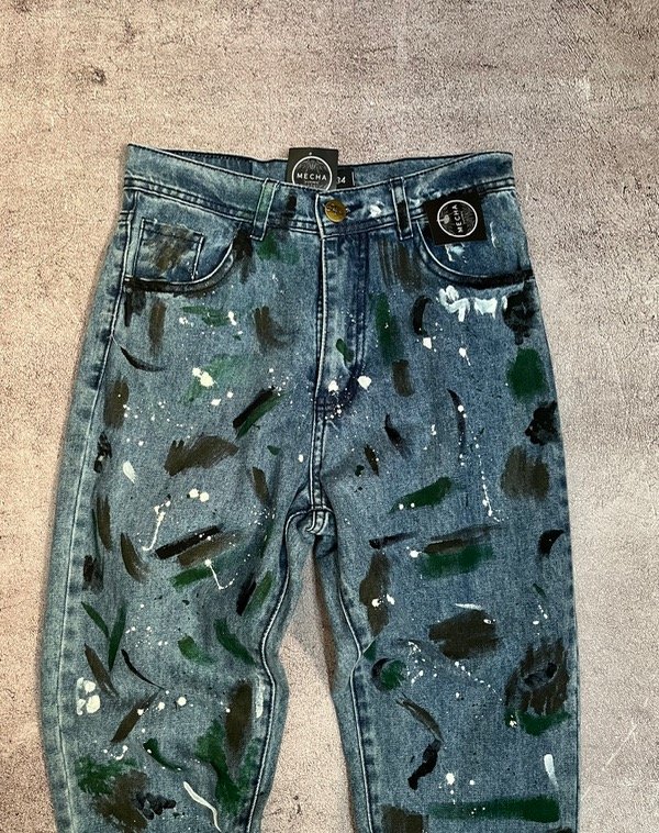 Jeans de diseño pintado a mano, modelo mom rígido.