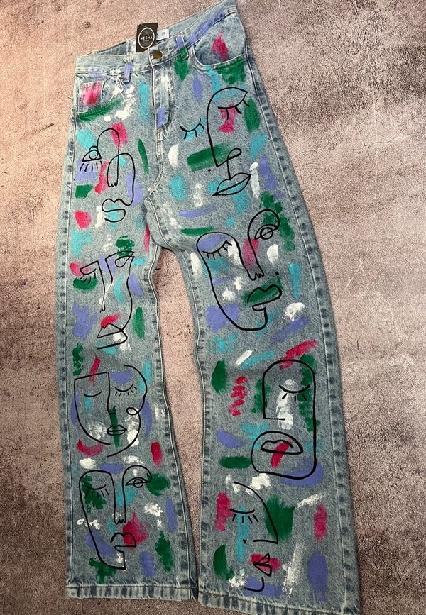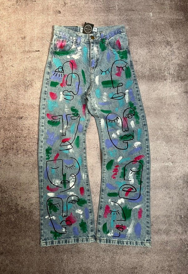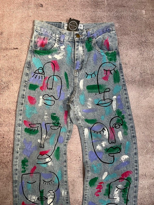 Jeans de diseño exclusivo pintado a mano, modelo wide leg rígido